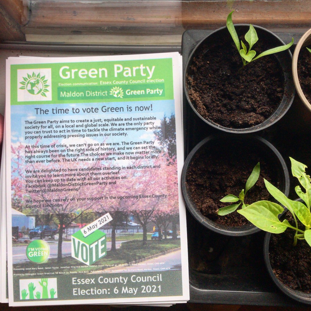 Thanks to all the folk who voted for me in the Essex County Council elections and to the small group of local people in Maldon District Green Party who all volunteered their time and energy to making sure the electorate had clear Green voices to vote for across the three Divisions in Maldon District.