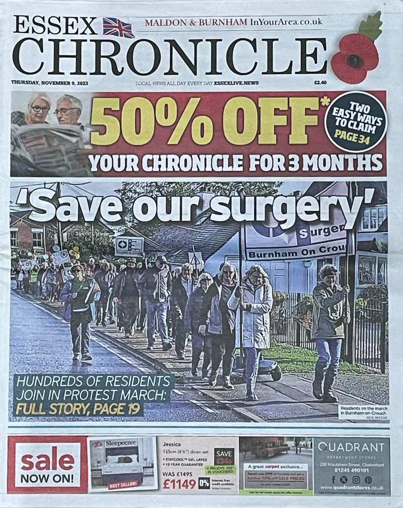 Looking back now, I guess that killing the commute allowed for a different transformation: one that allowed me to make myself at home. It wasn’t until last summer that I actually felt the turn to a new kind of engagement with this place. In August, the news broke that Burnham’s NHS surgery planned to move from its central location to a peripheral one, outside the settlement boundary and into the inaccessible, under-construction and controversial retirement Village named ‘Burnham Waters’. Claire and I saw a notice of an informal meeting of folk opposed to such a move and went along. Ever since, we’ve been part of the Burnham SOS (Save Our Surgery) group.
