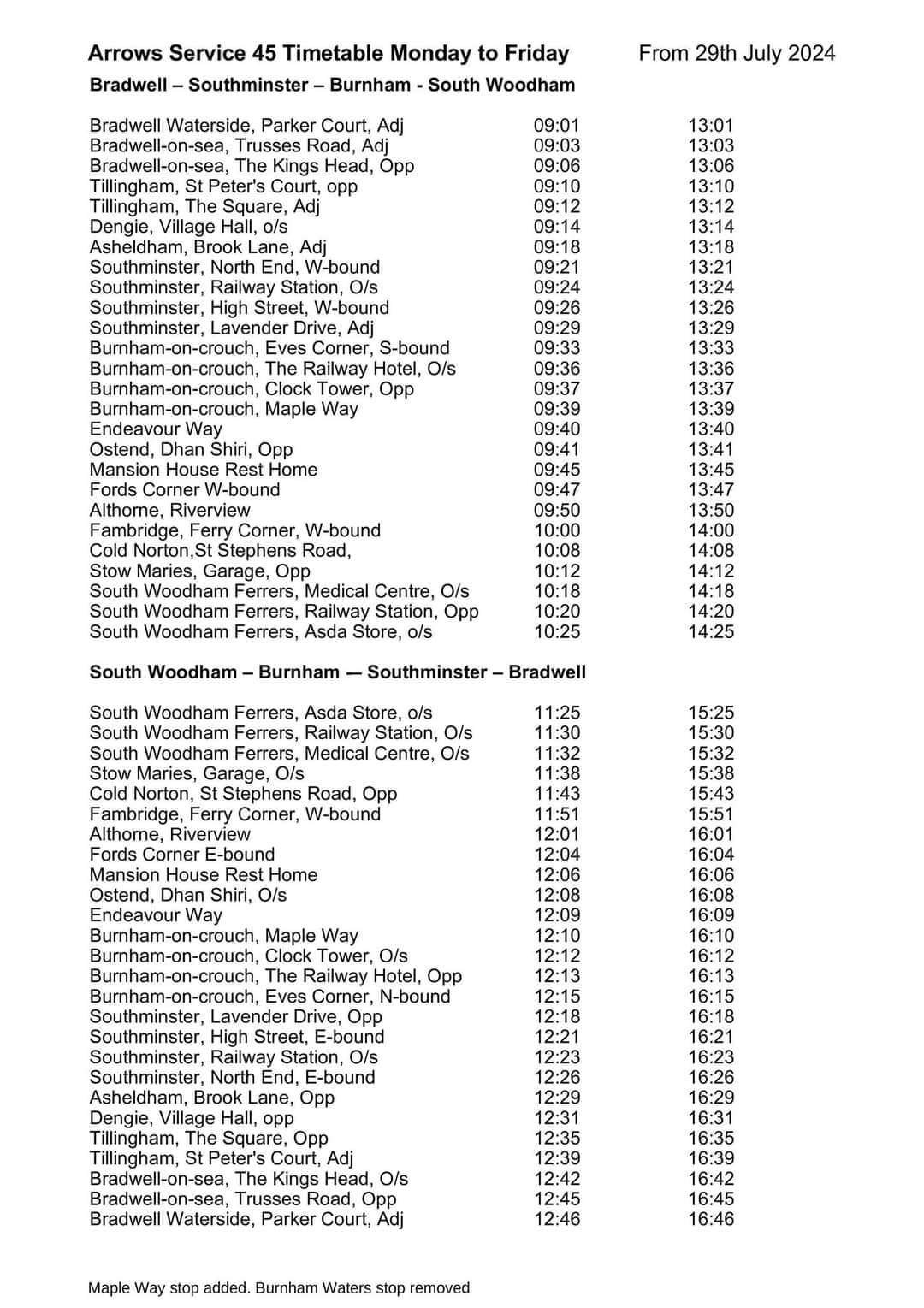 Have just been told by Stephensons that Essex County Council have changed the route around so the bus will start at South Woodham Ferrers at about 9 am before going on its journey to Bradwell where it will turn around. Therefore Tillingham will have the first bus at about 11.20 am!!! It sounds like it will be really hard to get back to Tillingham as well. Am waiting for a phone call from ECC bus transport to see what is happening and what the new timetable will be. No buses here in Tillingham since last Thursday grrr. 😡 Who from South Woodham Ferrers needs to travel to Burnham or Bradwell at that time of day? And when do Essex County Council intend to let us know the new timetable and when it is going to start running? I had an appointment in Maldon today, no chance of getting there