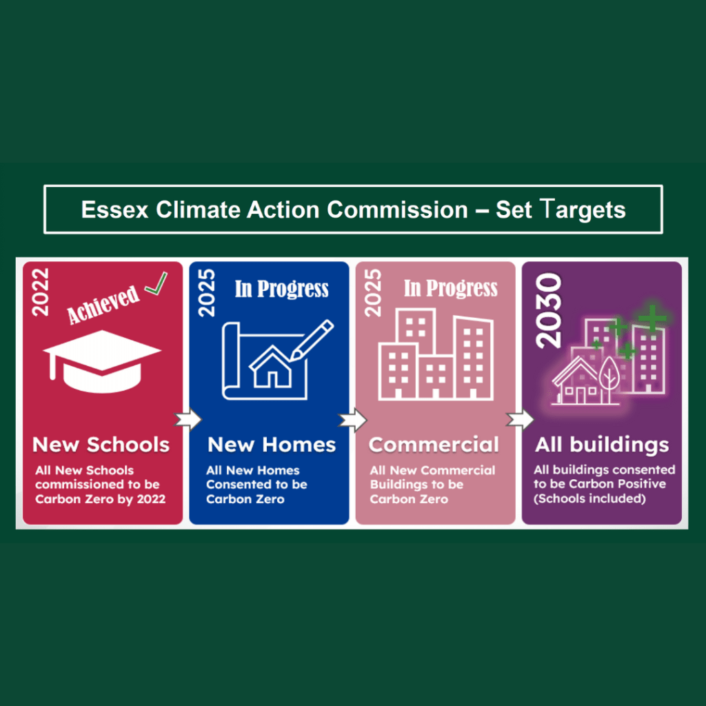 I was also impressed by the statements that Essex was taking a leading role, especially with the Essex Climate Action Commission Set Targets for all new homes to be net zero by 2025 and for all new buildings to produce more energy than they use by 2030.