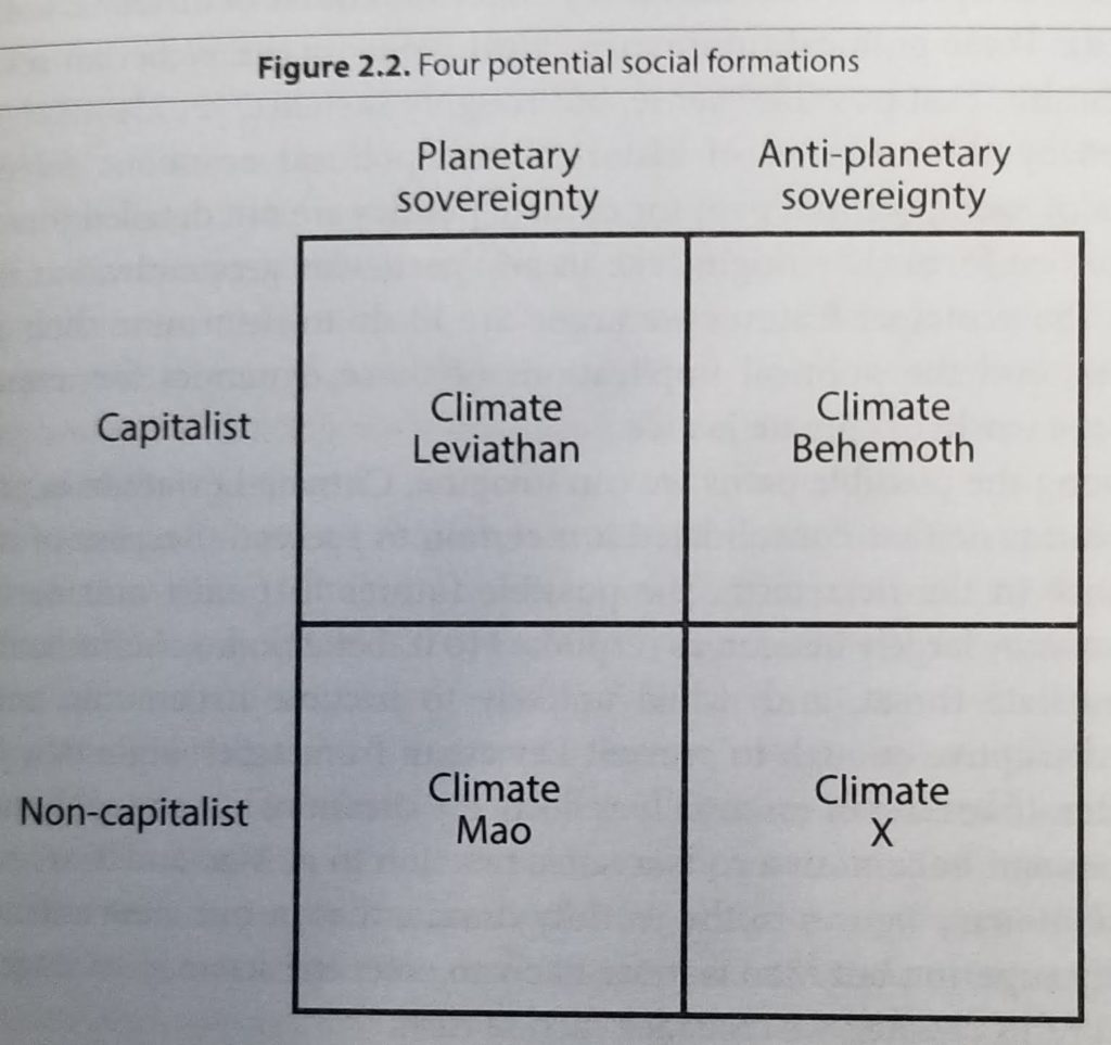 I find the political scenarios of Geoff Mann and Joel Wainwright’s Climate Leviathan: A Political Theory of Our Planetary Future (2018) instructive here.