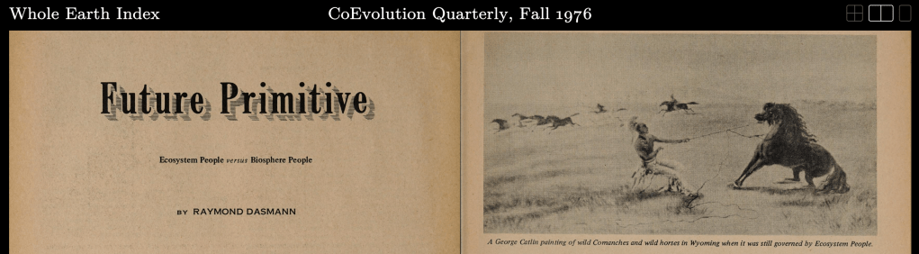 ‘Think Globally: Act Locally ‘has been a familiar refrain of the Green movement for decades now. It poses the problematique at the planetary level but advocates for action at a smaller ‘here’. The scale of this here is never entirely clear but the bioregionalist Raymond Dassman confronting the ecological crisis in the 1970s made a distinction between “biosphere people,” who exploit resources from the entire planet and “ecosystem people,” who can achieve a high-quality of life within their local bioregions. The bioregionalists encouraged us to provision ourselves primarily from our local watershed and to reinhabit this more discrete bio-geo-ecological unit as other species do. “The world”, poet Gary Snyder wrote is “places.”