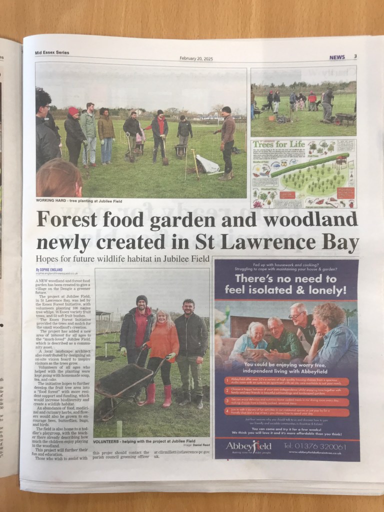Friday. The new woodland and food forest in St Lawrence made the local paper.