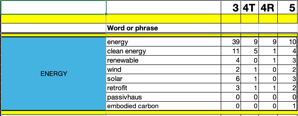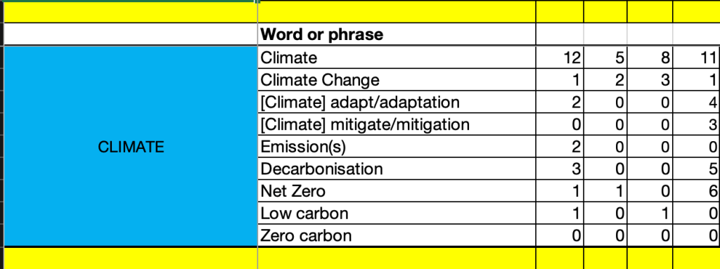 There are several hundred pages to go through here (874 pages to be precise), so I’ve done a bit of barefoot textual analysis as a first attempt to see what they have to say about the climate and nature emergencies.