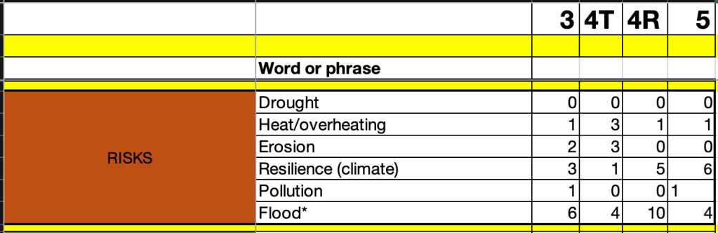 The less we mitigate climate change, the more risks we will face and the greater adaptation we will need to make. There’s not much about this in these forward looking documents and some risks get more attention than others.