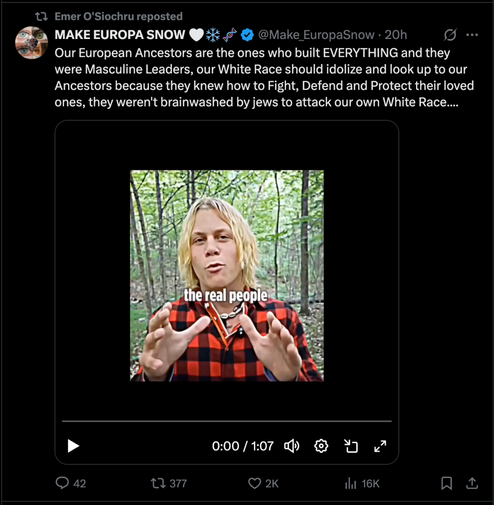 “Our European Ancestors are the ones who built EVERYTHING and they were Masculine Leaders, our White Race should idolize and look up to our Ancestors because they knew how to Fight, Defend and Protect their loved ones, they weren’t brainwashed by jews to attack our own White Race….”