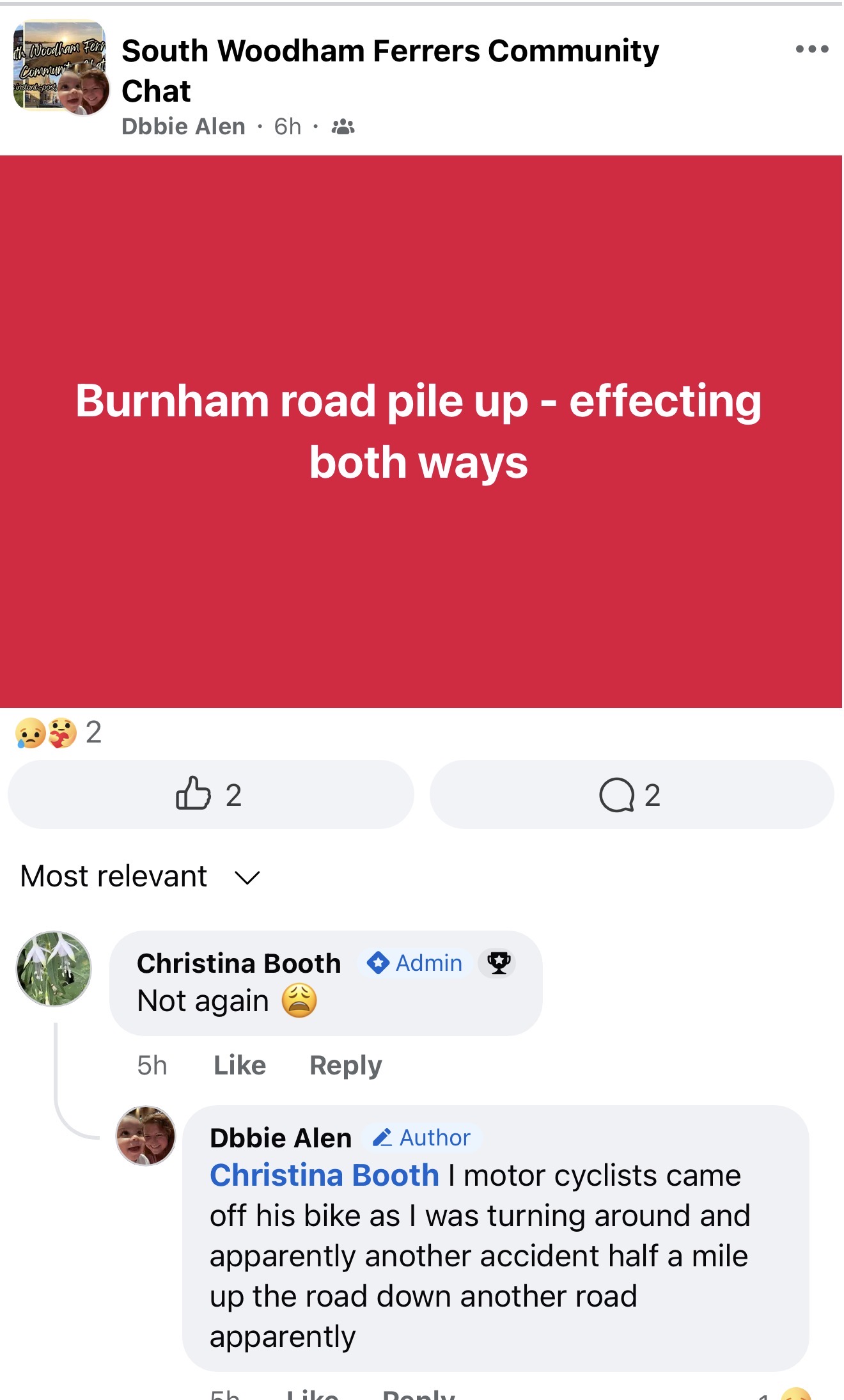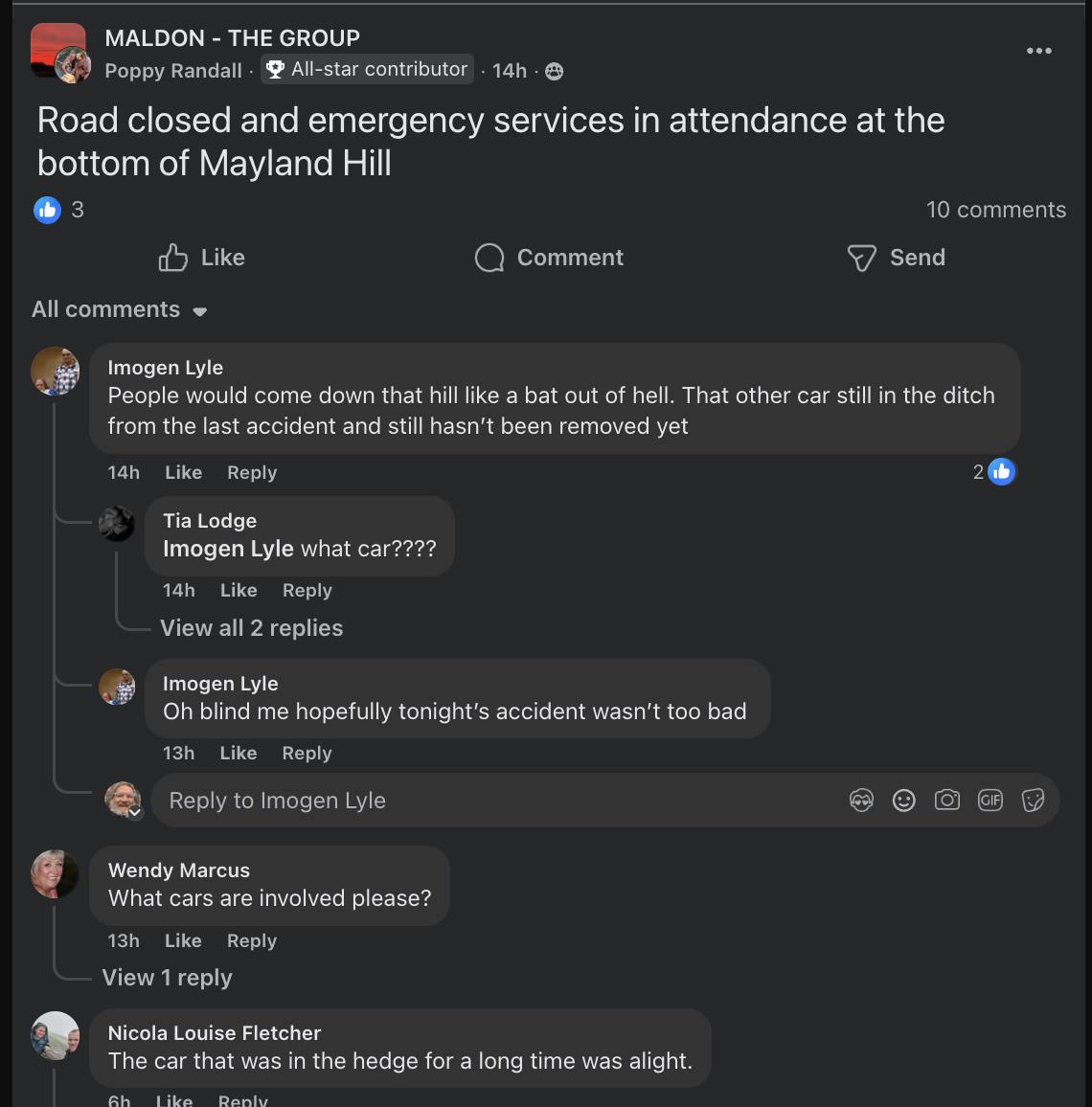 Yesterday saw another collision on Mayland Hill. The B1018 (Southminster Road) around the Mayland Hill/Dairy Farm Road junction is proving to be an accident hotspot. The default ‘national speed limit applies’ is clearly not working for the Dengie’s roads. This is just one location where speed limits need to be reduced with traffic calming infrastructure to enforce slower speeds.